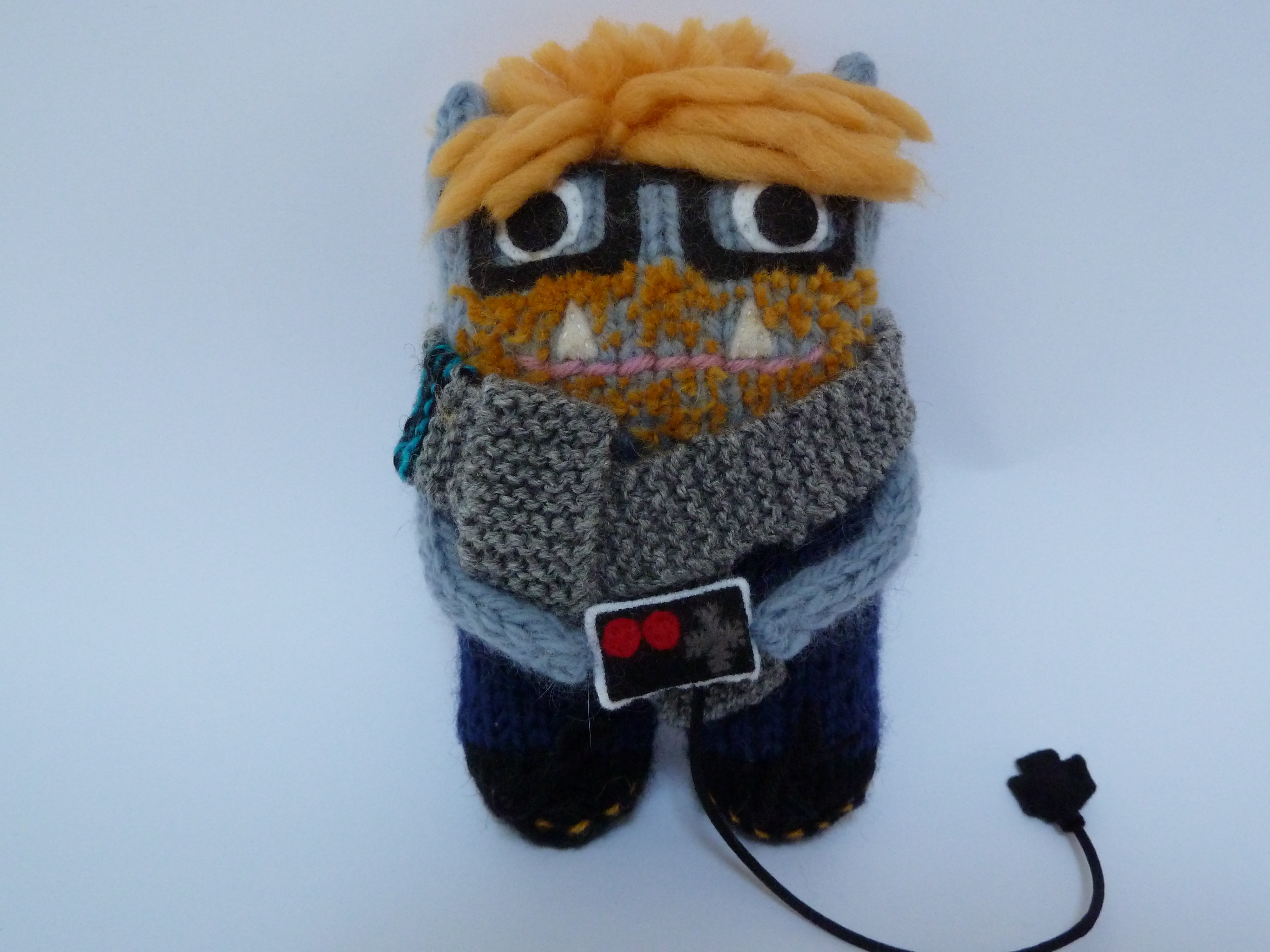 So, that brings me to Justin Beastie. Requested by my friend Adele as a Christmas gift for her boyfriend, she asked for a Beastie with “blond hair, boxy glasses, stubble and some kind of games controller”. I’d already made a Beastie with hair (the Punk Beastie, in this post), but the rest of the project was real “here be monsters” uncharted territory.
