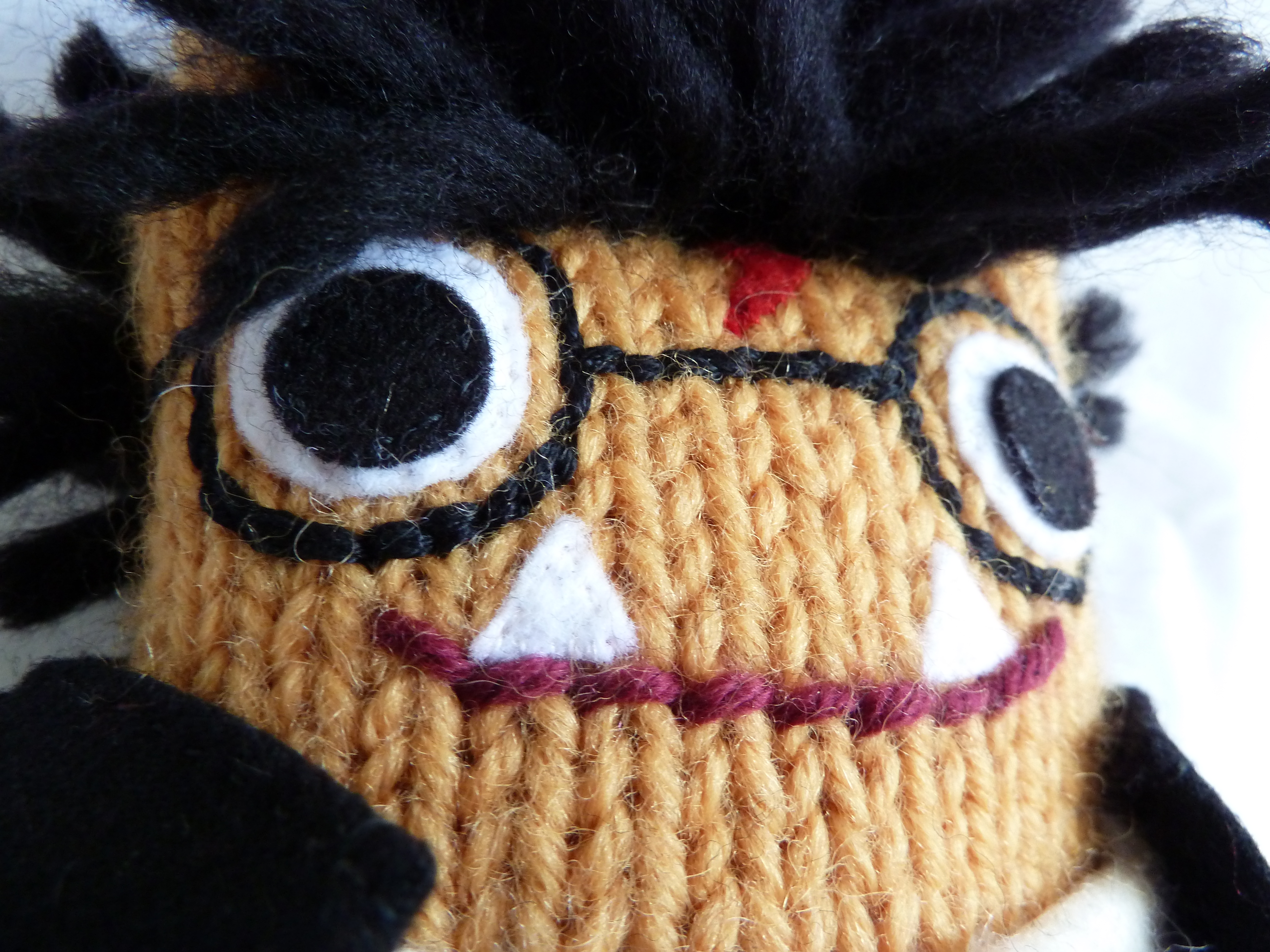 And finally… yes, I know it’s summer term, but I couldn’t resist knitting a cosy Gryffindor scarf to complete Harry Potter Beastie’s uniform! After all, you can never tell where his adventures will take him next…