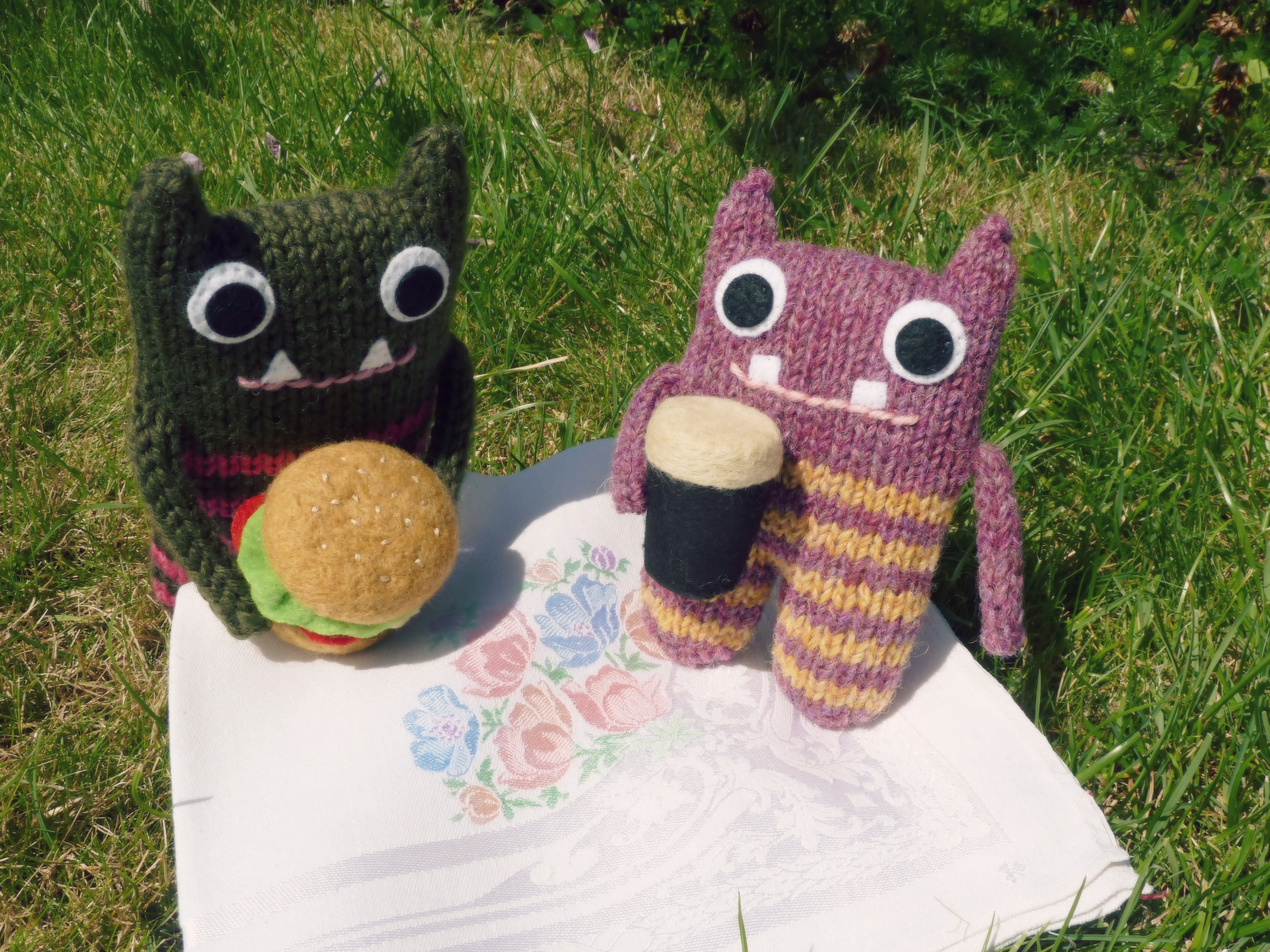 Aw, I love this Beastie picnic-time (the little sesame seeds on the felted bun are so genius!). The summer is really made for outdoor munchies and sips, isn’t it? I hope that your behind-the-scenes work is going well, and that it also leaves some time for some picnic fun, à la Beastie. 🙂