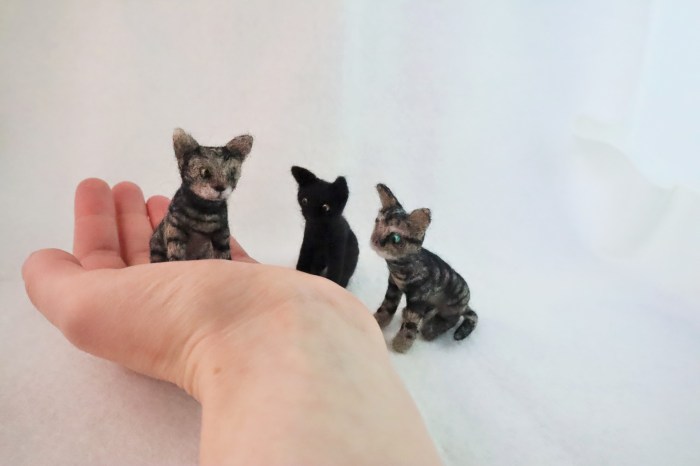 When birthday time rolled around again, another email popped into my inbox. As it turns out, since we’d last spoken, some full-size, non-Beastie cats had joined this family – two calico cats, just like the ones I’d made, and one little fuzzy black kitty.