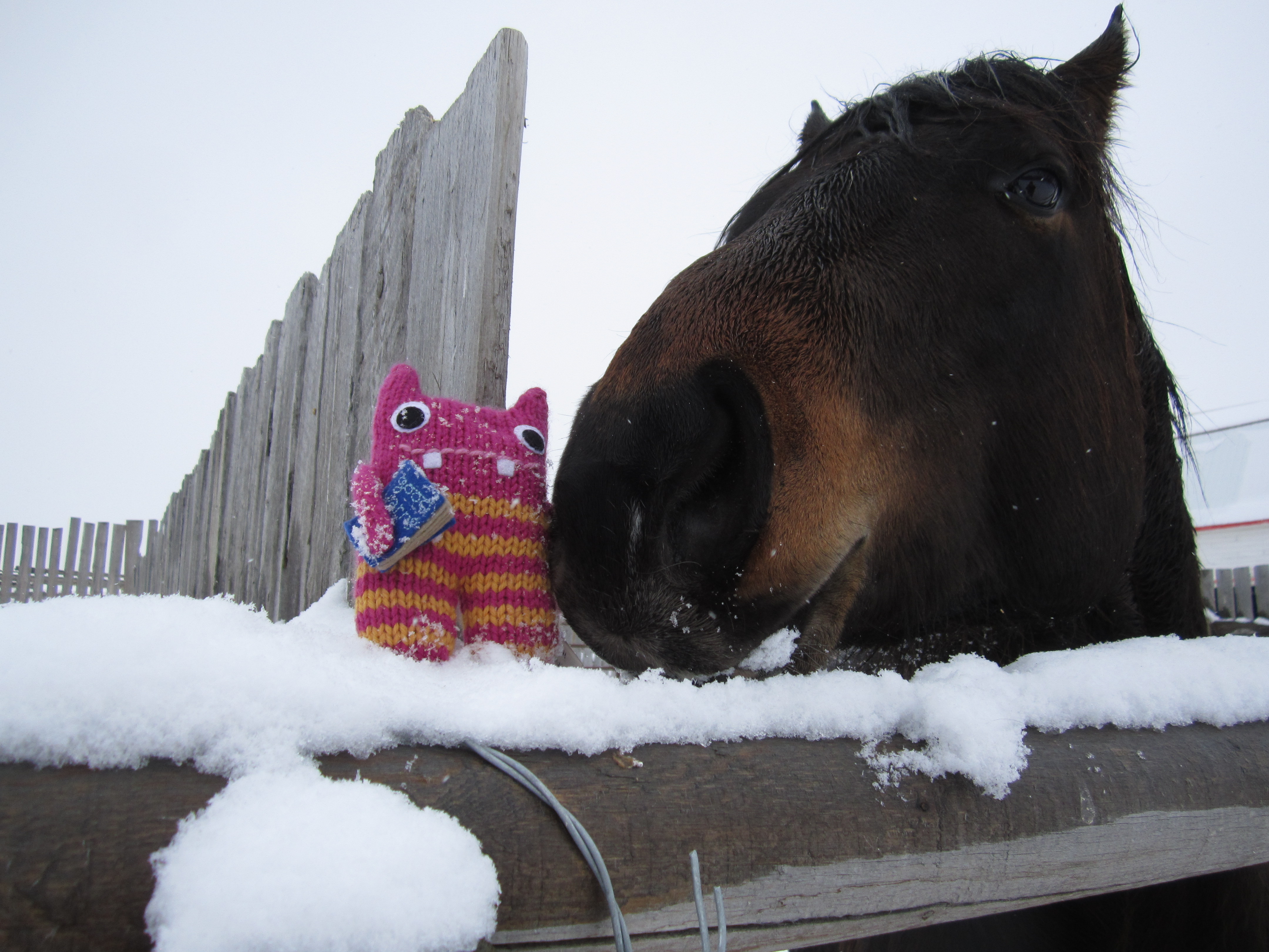 It’s widely assumed that bookworms tend to be stay-at-home types, who like nothing more than curling up on the sofa and losing themselves in a good story. Not so for Reader Beastie! Since moving to Canada earlier in the year, he’s really flung himself into the life of a ranch hand… although as you can see from the photo above, he’s yet to find a proper pair of cowboy boots in his size!