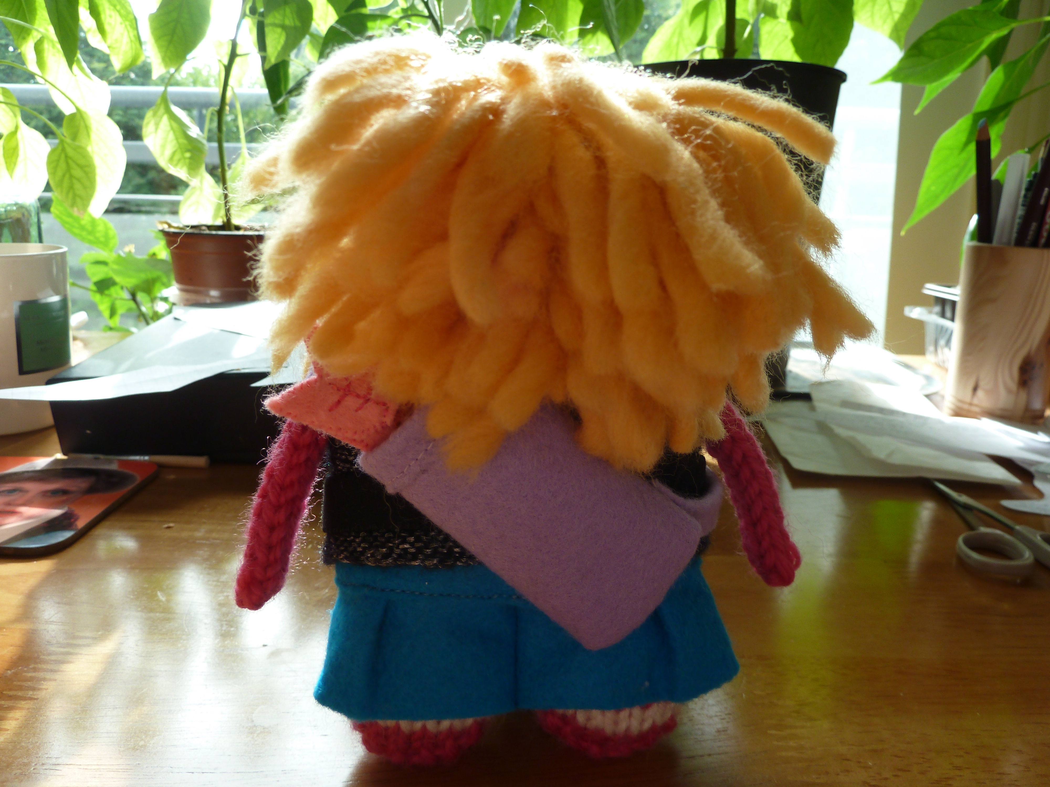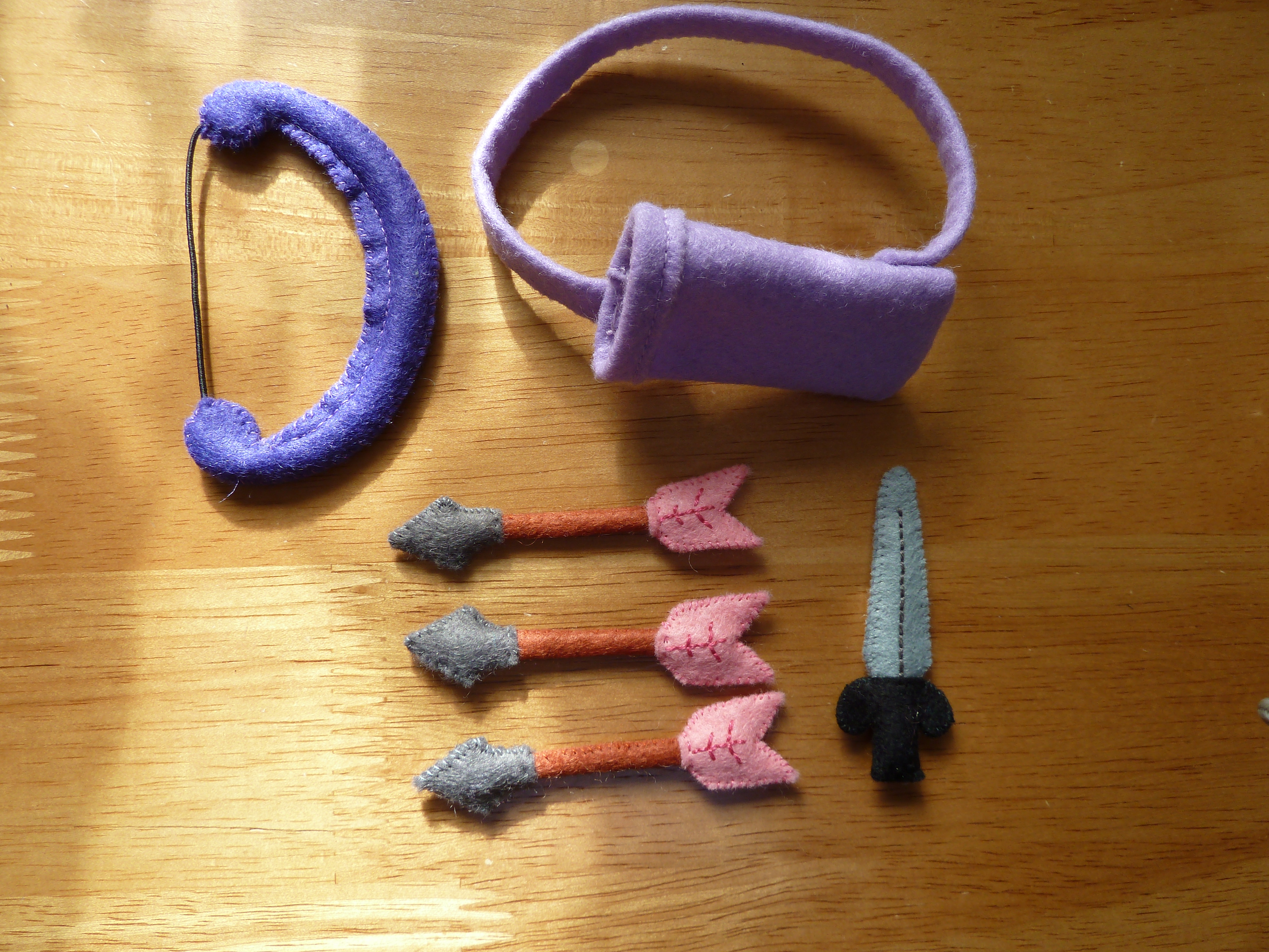 As you can see, she’s ready to face down any dragon who dares to cross her path! She’s got a chain-mail top, and she’s armed with a lethal felt sword. Over her shoulder is a quiver of deadly felt arrows, to be used for long-range dragon-slaying missions…