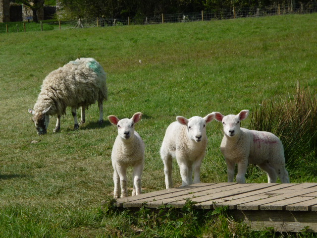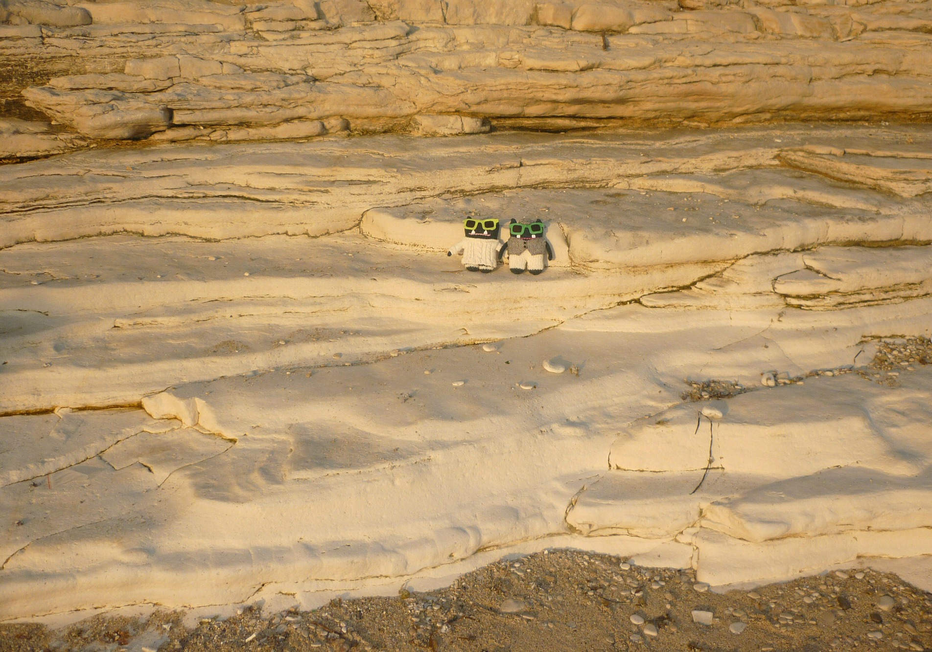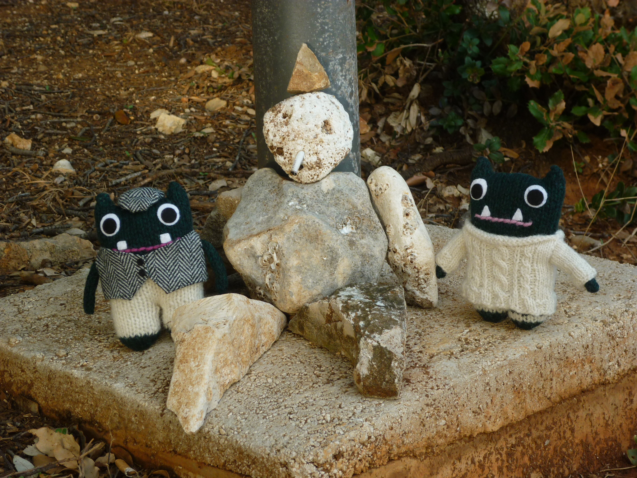 Aran Beastie is enjoying the sunshine, and is taking a moment to stop and smell the first spring daisies. It looks like Cookie Beastie is content to keep munching on that biscuit though!