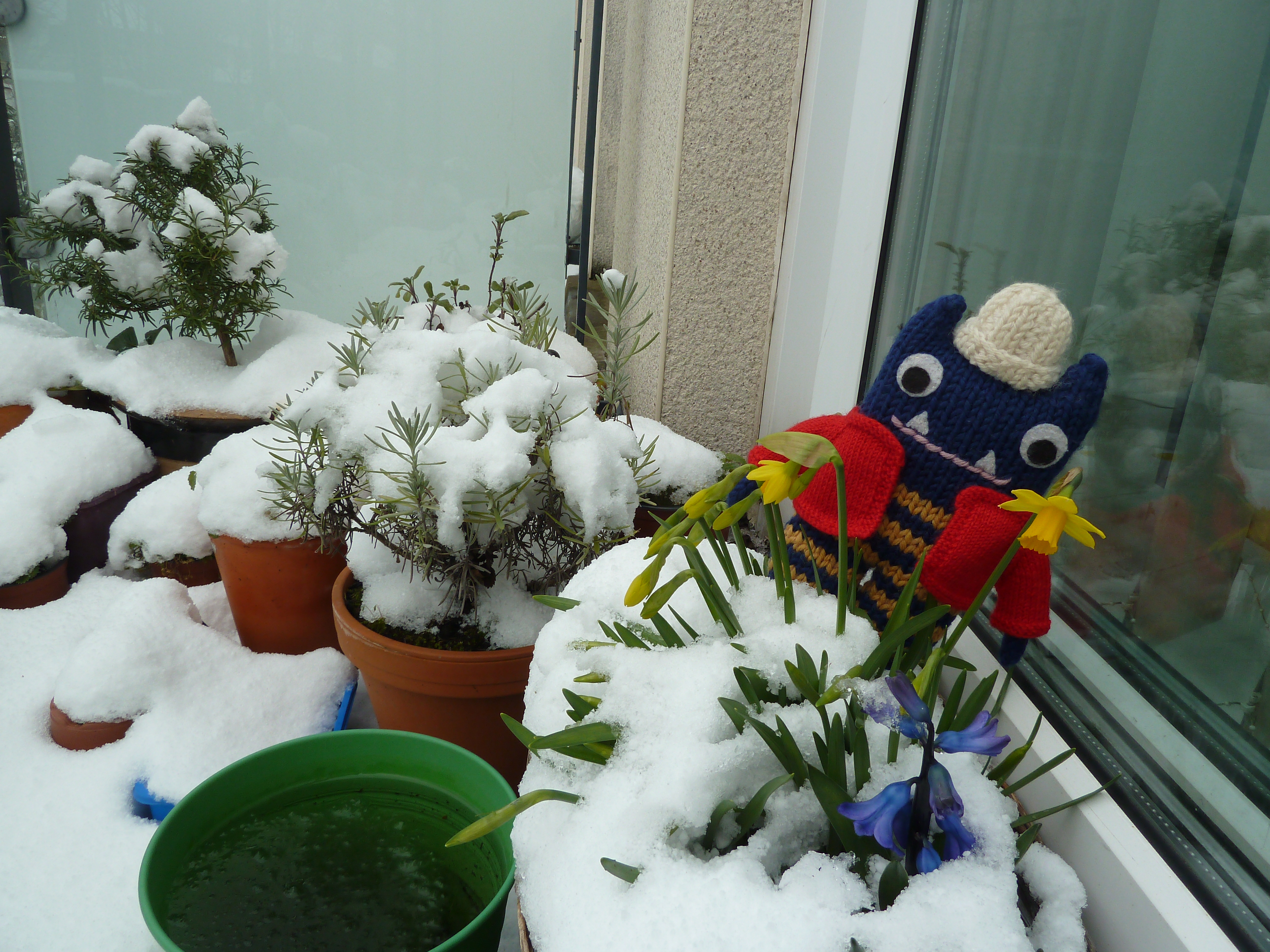 Plunkett with Hyacinths - CrawCrafts BeastiesBut then Paddy popped up, and suggested that it might be nice to take a wander outside.