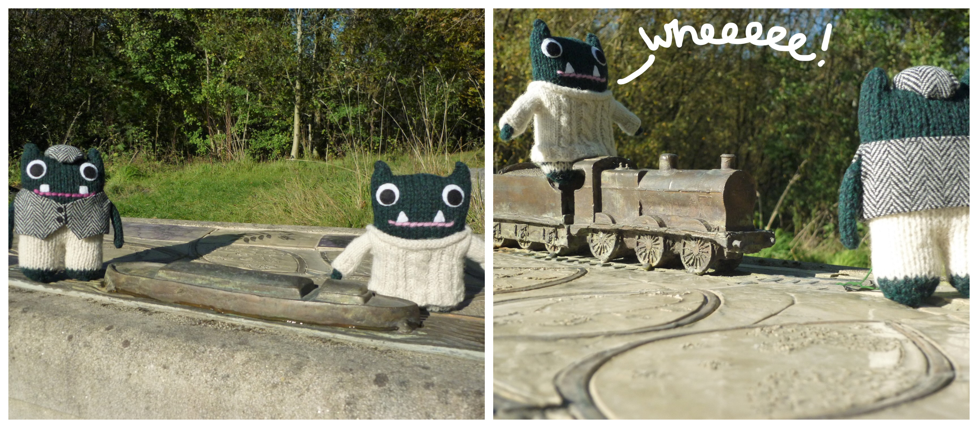 Paddy and Plunkett on the train - H Crawford/CrawCrafts BeastiesThe lads do enjoy a nice trip on the train.