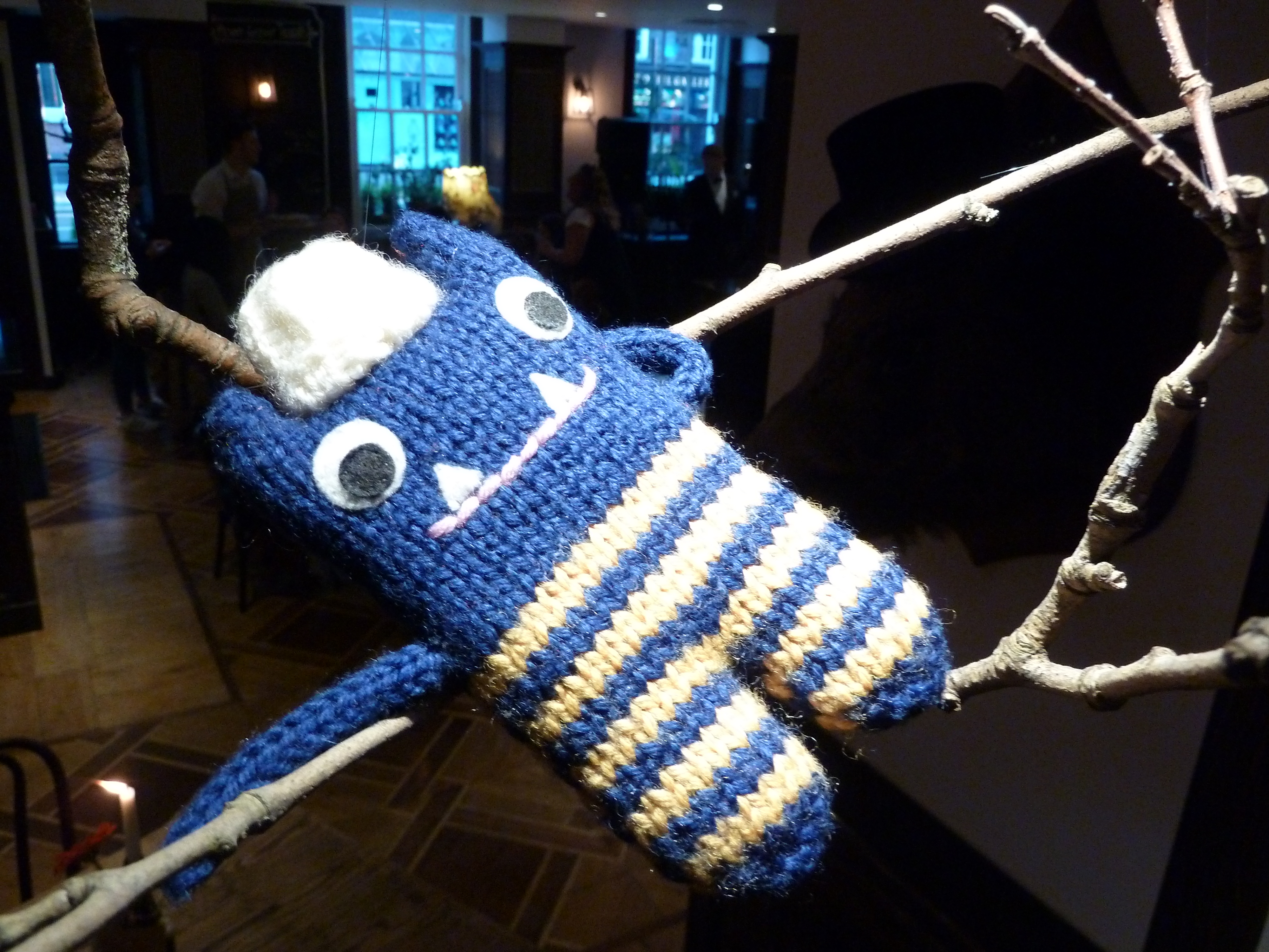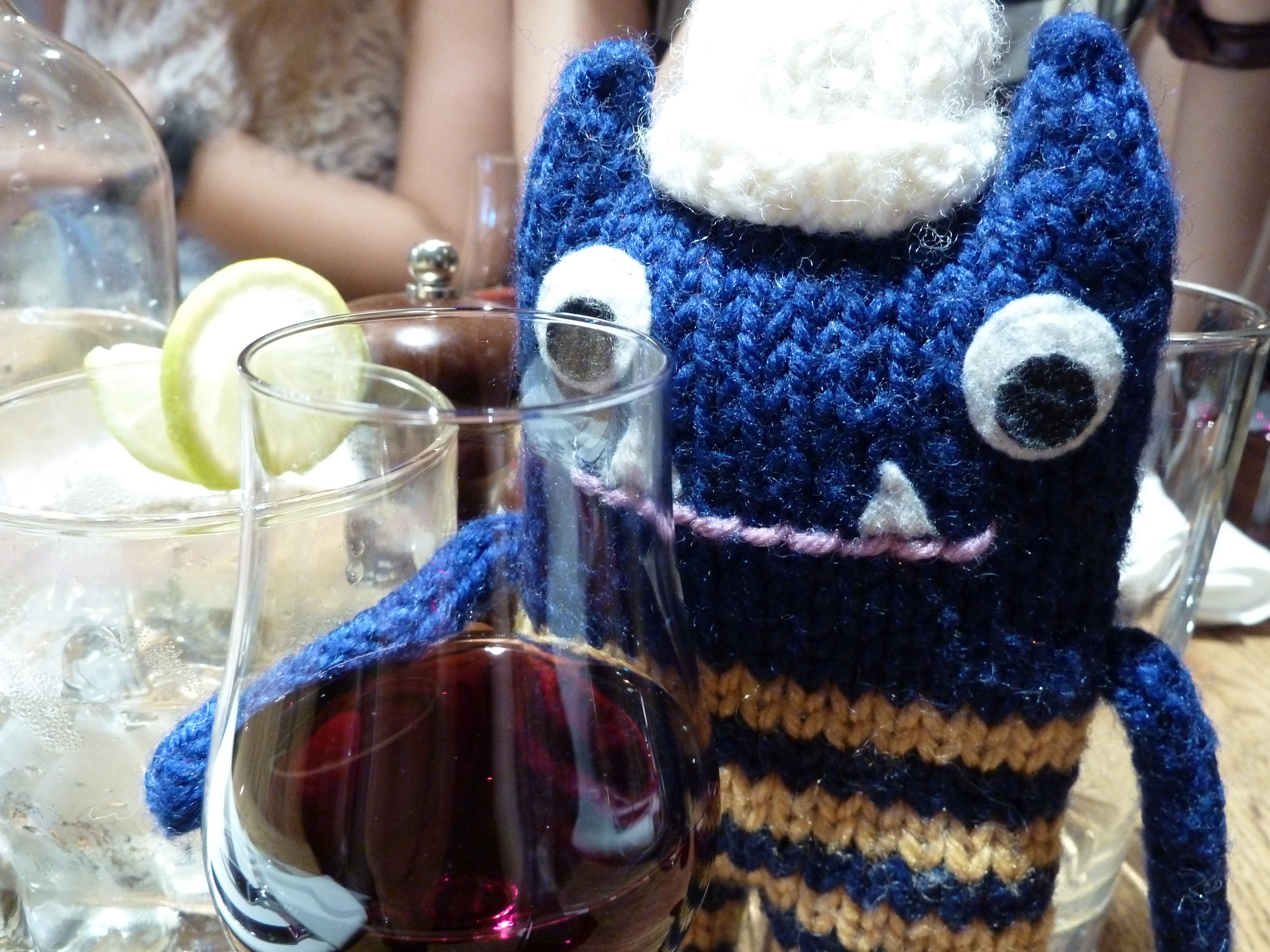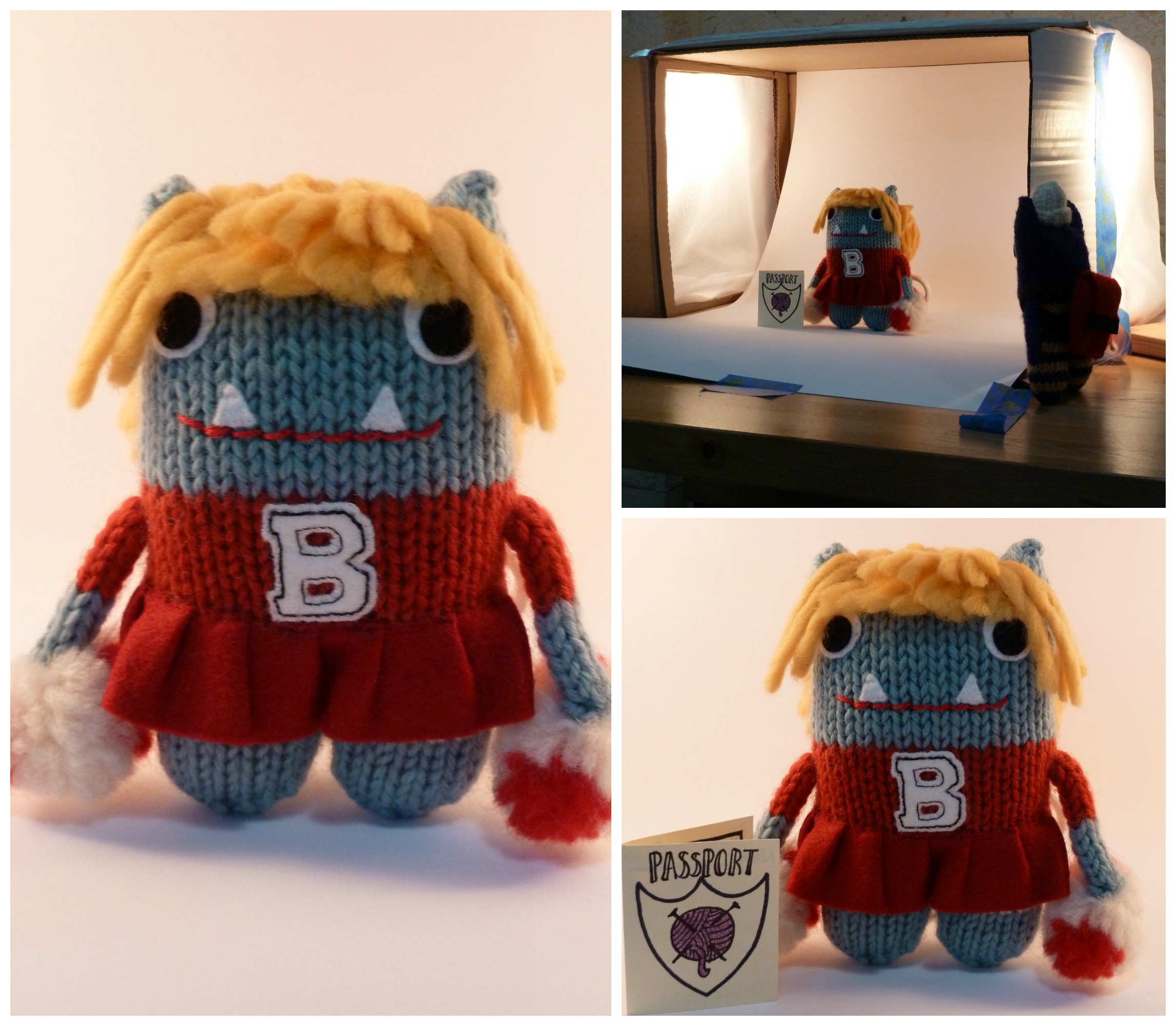 We also enjoyed meeting up with some of our crafty colleagues – it’s always fun for me to talk shop with other people who find wool and fabric as compelling as I do, and Explorer Beastie likes making new friends too! Here he is hanging out chez Guadalupe Creations, and getting up close and personal with some felt viruses at Niki Collier‘s studio!