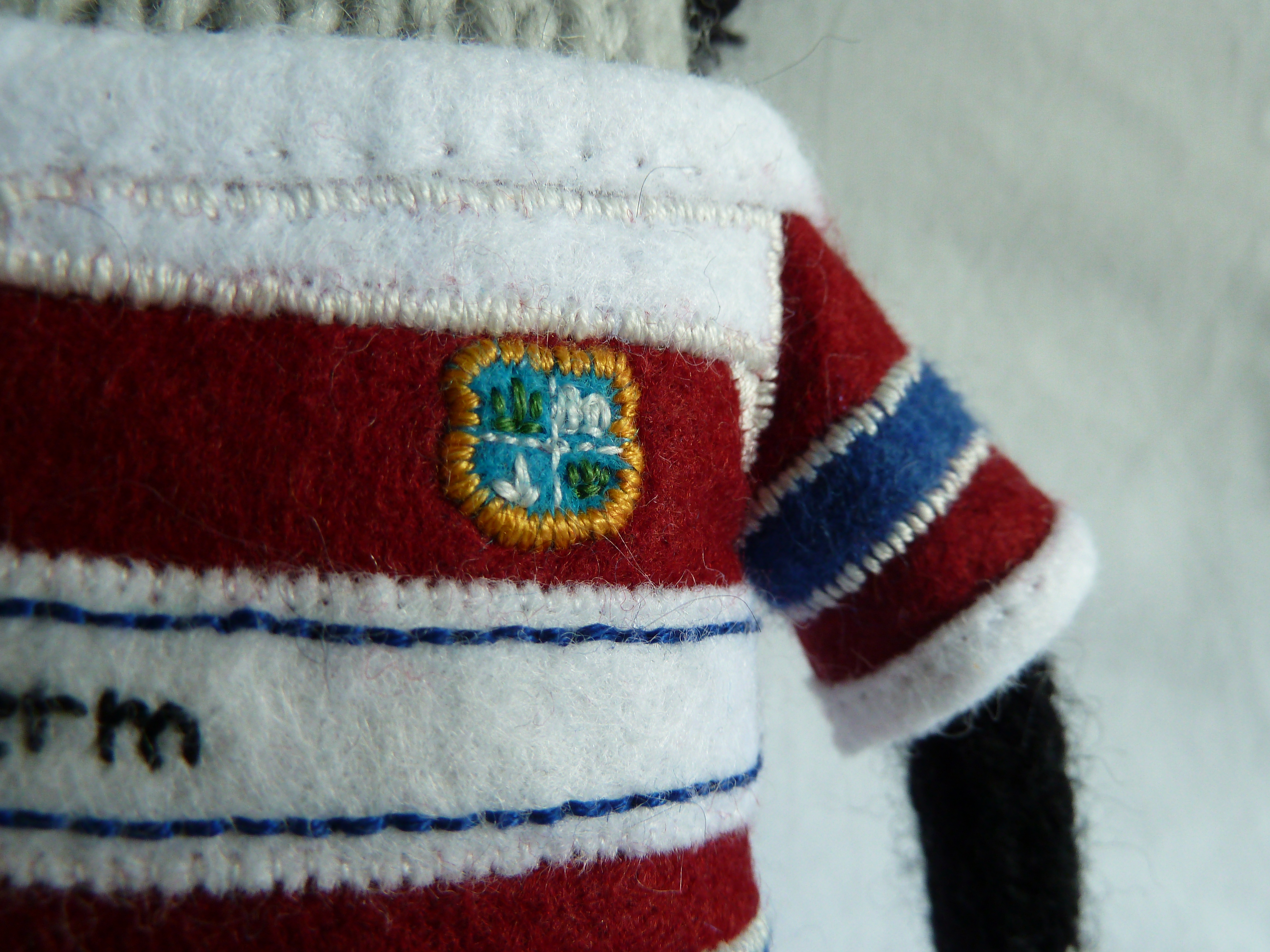 I wanted to add in a few personal touches to make this monster extra special, too. Big Tall Rugby Beastie’s shirt is a Beastie-sized version of the one his new human team mates wear…
