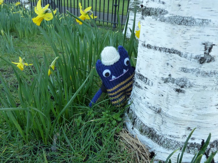 In my first year of Beastie-making, a little green monster joined me to watch the fun!